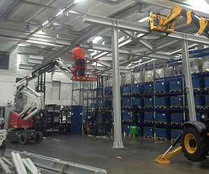 Käytössämme on kaksi hallinosturia (kestävyys 5 ja 6 tonnia).